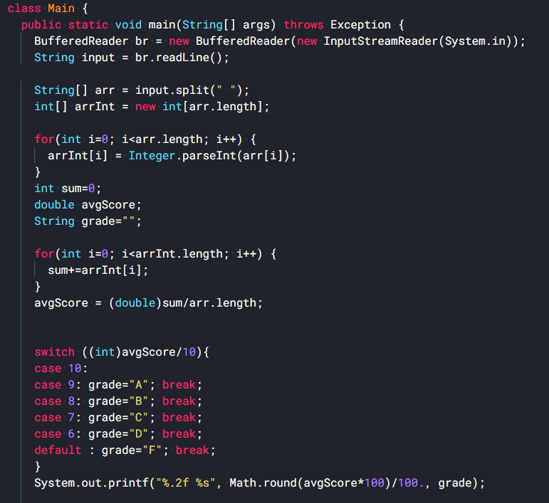 4. switch-case문을 활용 - 점수에 따른 등급 설정