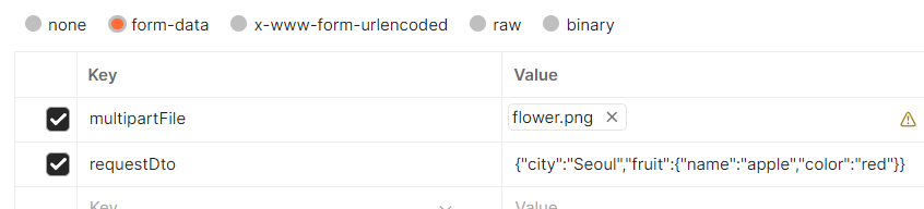public Fruit apiV1(@RequestPart MultipartFile multipartFile, @ModelAttribute Fruit fruit) {