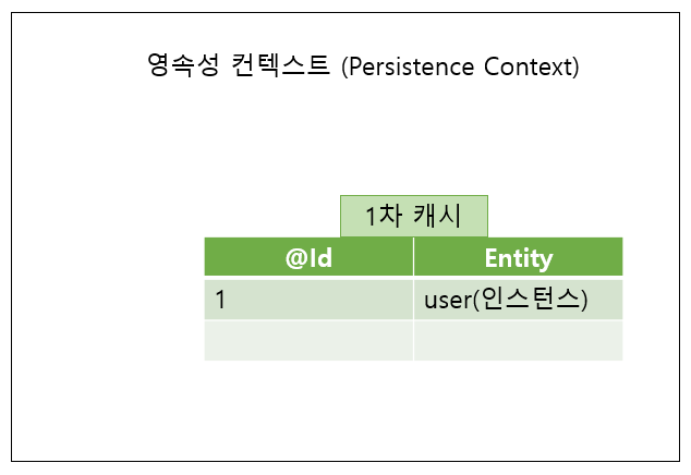 영속성 컨텍스트는 내부에 캐시를 가지고 있으며 이것을 1차 캐시라 하며 영속 상태의 엔티티는 모두 이곳에 저장된다.