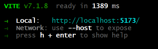 설치가 다 끝나면 다음 화면과 함께 http://localhost:5173/ 에 접근 가능하다. (이후 설정을 통해 http://localhost:3000으로 수정)