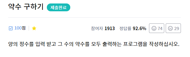 임의의 양의 정수를 입력받아 입력된 수의 약수를 공백으로 구분하여 출력하는 프로그램을 만드는 문제입니다.